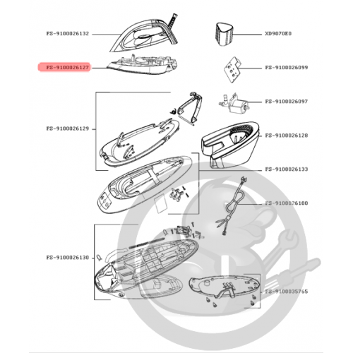 Base de poignée + semelle système vapeur Calor FS-9100026127